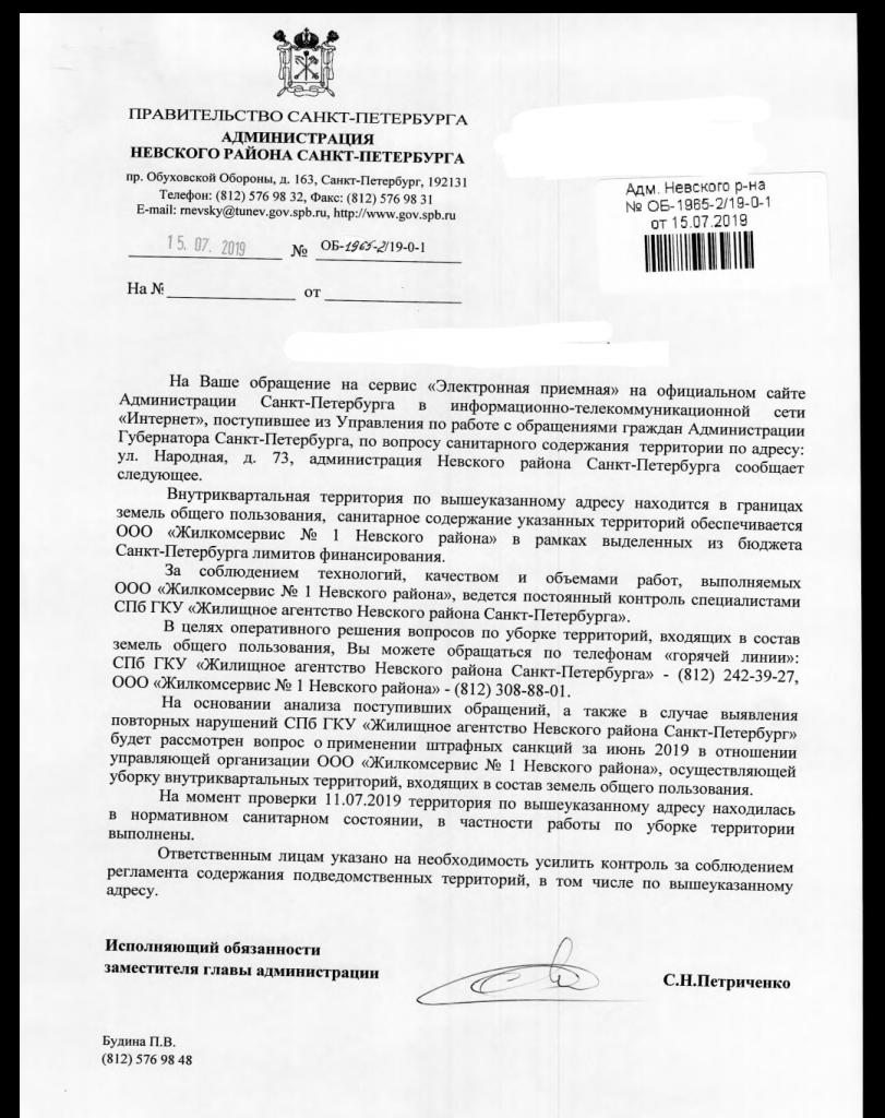 айГражданинОтправлено 19.06.2019: "Администрация Санкт-Петербурга"