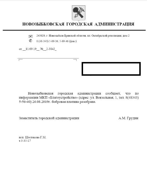 айГражданинОтправлено 20.08.2019: "Администрация города Новозыбков Брянской области"