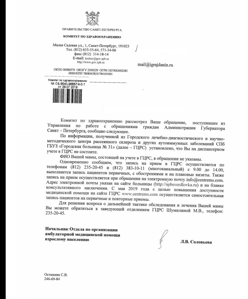 4. Я бы хотела видеть результатом моего обращения решение проблемы, т.е. возможность для пациентов реально дозвониться по телефонам. Сейчас я получила ответ, который ничего не значит и является формальным . Т.е. нельзя сказать, что меня проигнорировали, но по сути вопрос как был не решенным, так и остался.