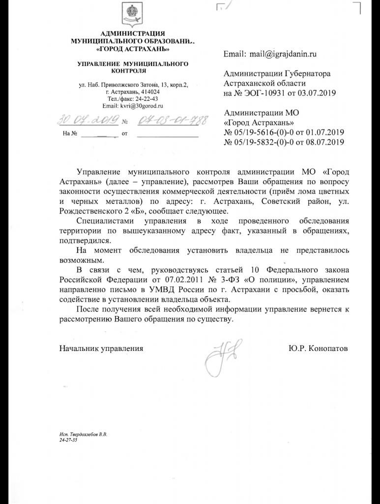 айГражданинОтправлено 30.06.2019: "Администрация города Астрахани"