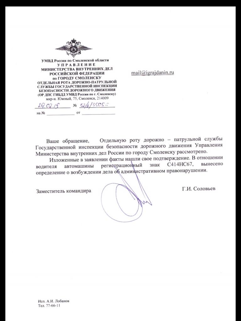 айГражданинОтправлено 30.06.2019: "УГИБДД УМВД России по Смоленской области"