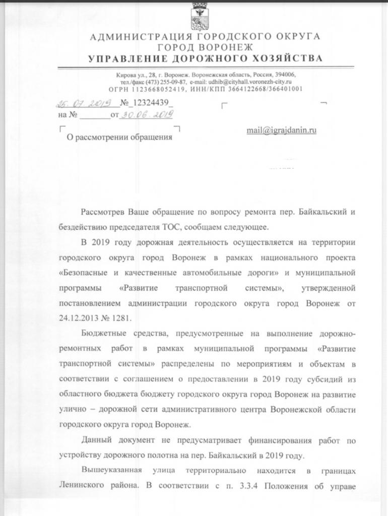 айГражданинОтправлено 30.06.2019: "Администрация городского округа города Воронеж"