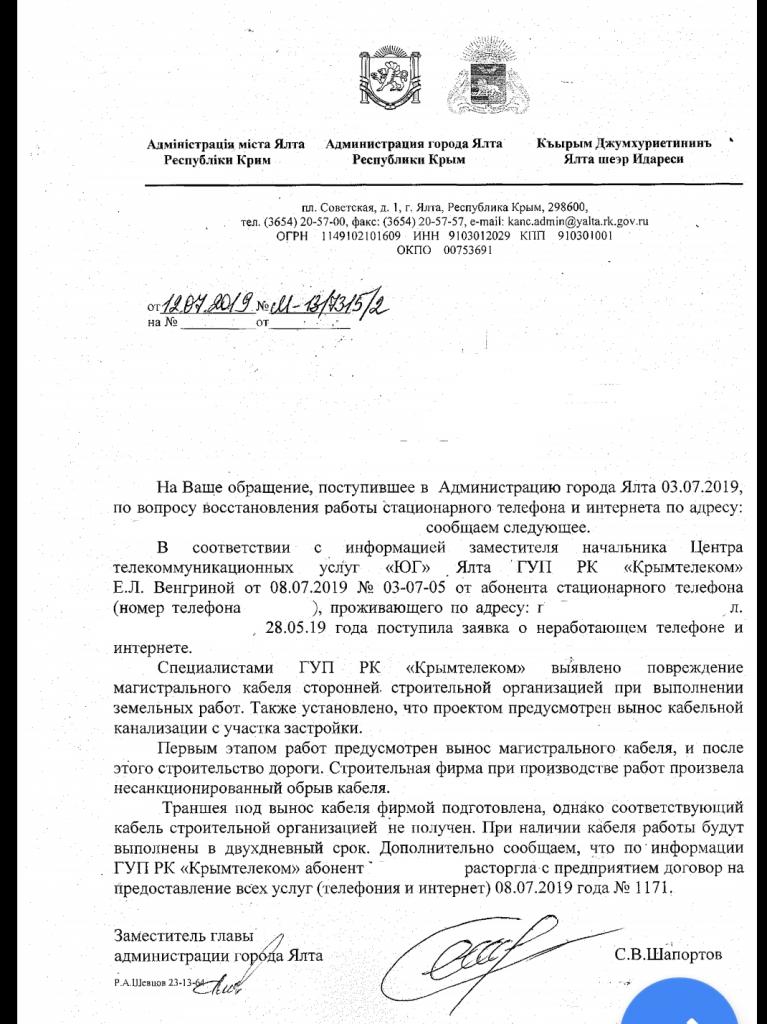 айГражданинОтправлено 03.07.2019: "Администрация города Ялты республики Крым"