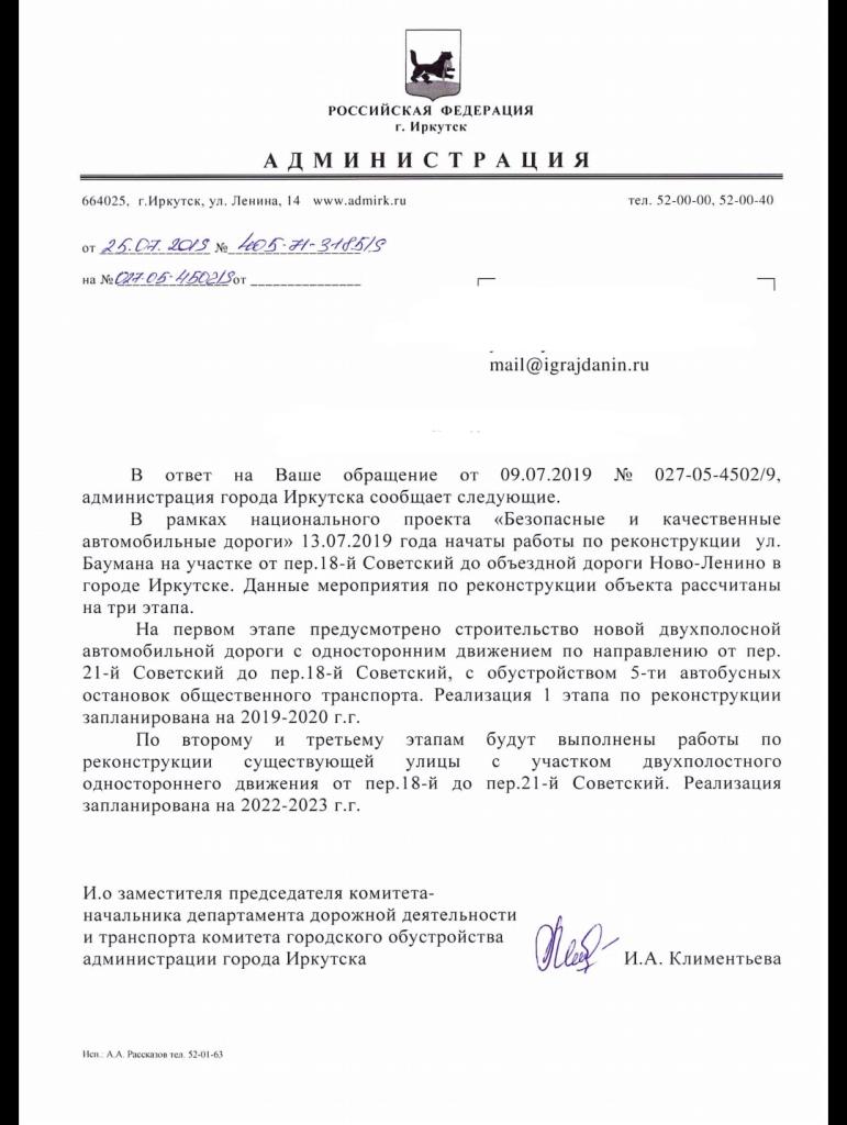 айГражданинОтправлено 07.07.2019: "Администрация города Иркутска"