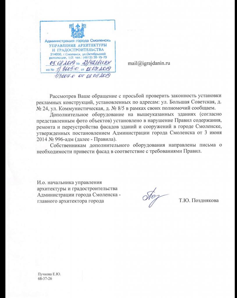 айГражданинОтправлено 07.07.2019: "Администрация города Смоленска"
