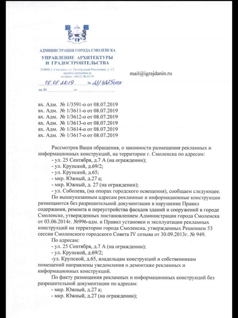 08.07.2019: Администрация города Смоленска