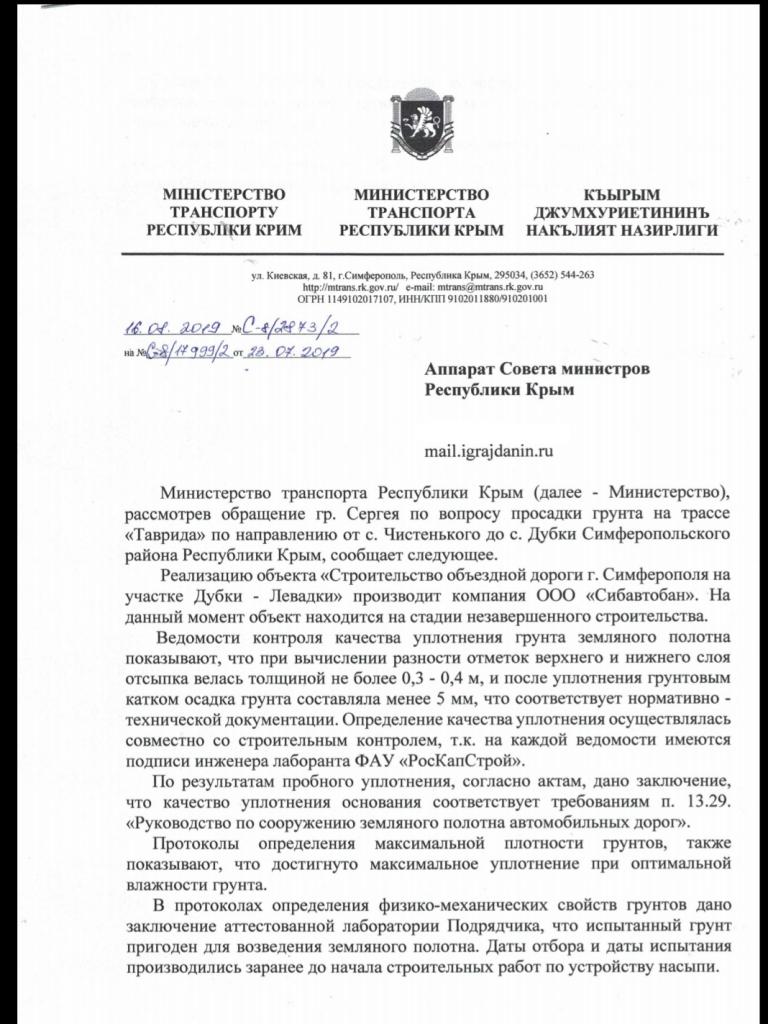 айГражданинОтправлено 20.08.2019: "Министерство транспорта Республики Крым"