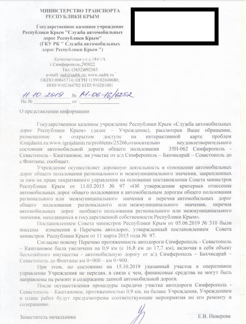 айГражданинОтправлено 17.09.2019: "Государственное унитарное предприятие Республики Крым «Крымавтодор» "