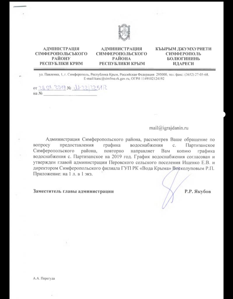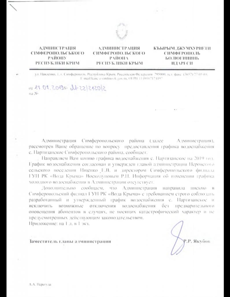 sergey markivУважаемый представители администрации Симферопольского района! Прикреплённый ответ на обращение ещё прочитать как-то можно, но текст самого графика разобрать очень сложно. Требую предоставить корректную сканкопию графика подачи воды.