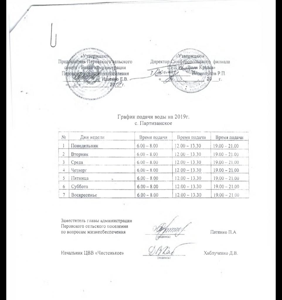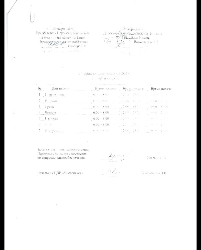 sergey markivАдминистрация Симферопольского района умышленно отказывает в предоставлении документов, касающихся жизнеобеспечения населения села Партизанское, а именно предоставляют копии документов (график подачи холодной воды), которые невозможно прочитать.