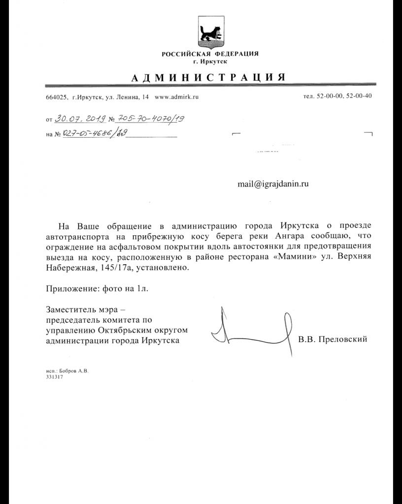айГражданинОтправлено 15.07.2019: "Администрация города Иркутска"