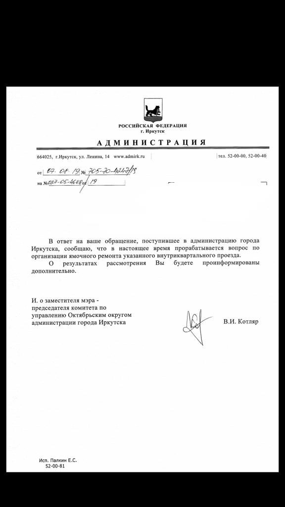 айГражданинОтправлено 15.07.2019: "Администрация города Иркутска"