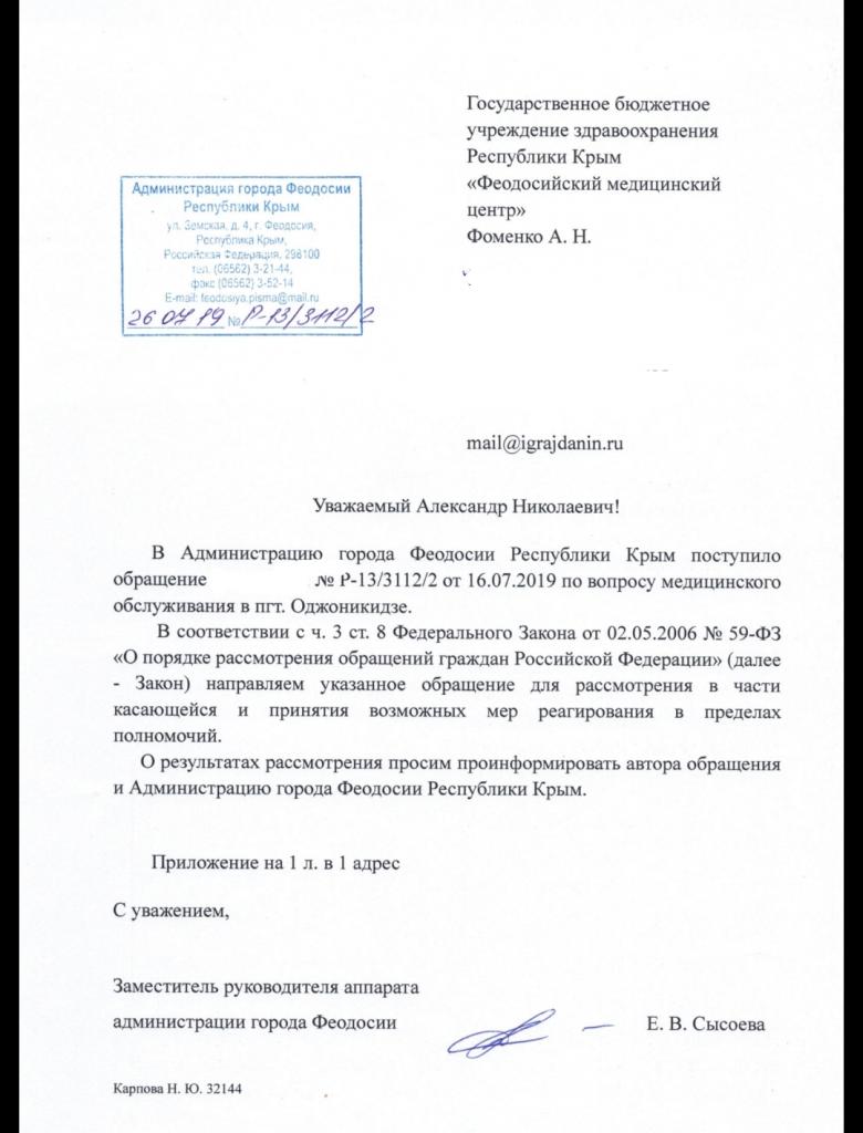 айГражданинОтправлено 15.07.2019: "Администрация города Феодосии республики Крым"