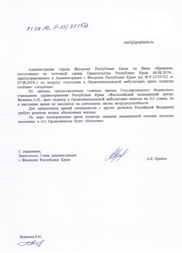 айГражданинОтправлено 06.08.2019: "Администрация города Феодосии республики Крым"