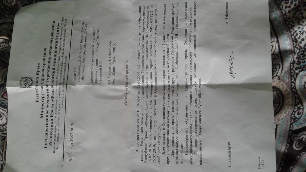 Рысак Еленаповторно направьте пожалуйста в Администрацию города Феодосии