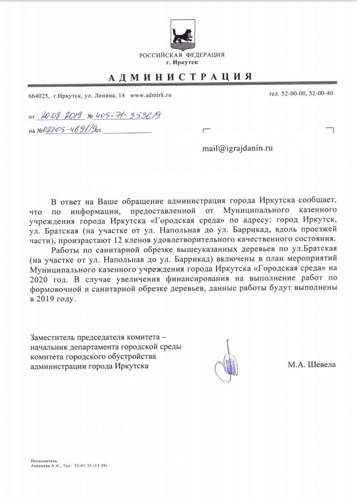 айГражданинОтправлено 15.07.2019: "Администрация города Иркутска"