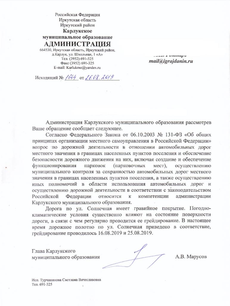 айГражданинОтправлено 16.07.2019: "Администрация Иркутского районного муниципального образования"