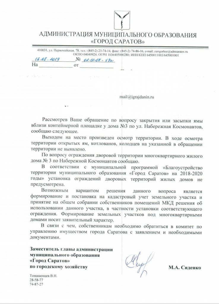 айГражданинОтправлено 18.07.2019: "Администрация муниципального образования "Город Саратов""