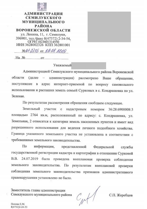 айГражданинОтправлено 19.07.2019: "Администрация муниципального образования Семилукский район Воронежской области"