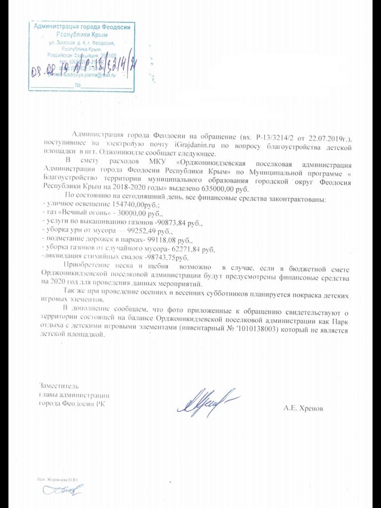 айГражданинОтправлено 22.07.2019: "Администрация города Феодосии республики Крым"