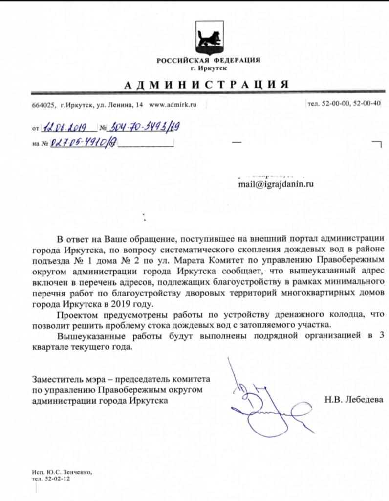 айГражданинОтправлено 24.07.2019: "Администрация города Иркутска"