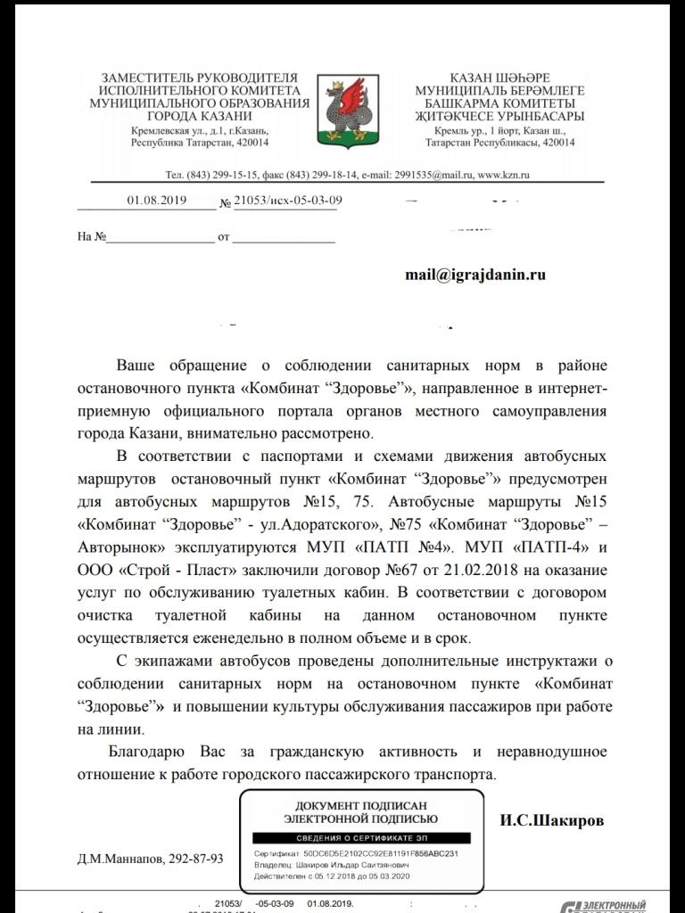 айГражданинОтправлено 25.07.2019: "Мэрия Казани республики Татарстан"