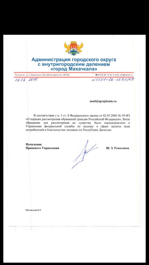 айГражданинОтправлено 25.07.2019: "Администрация г. Махачкалы"