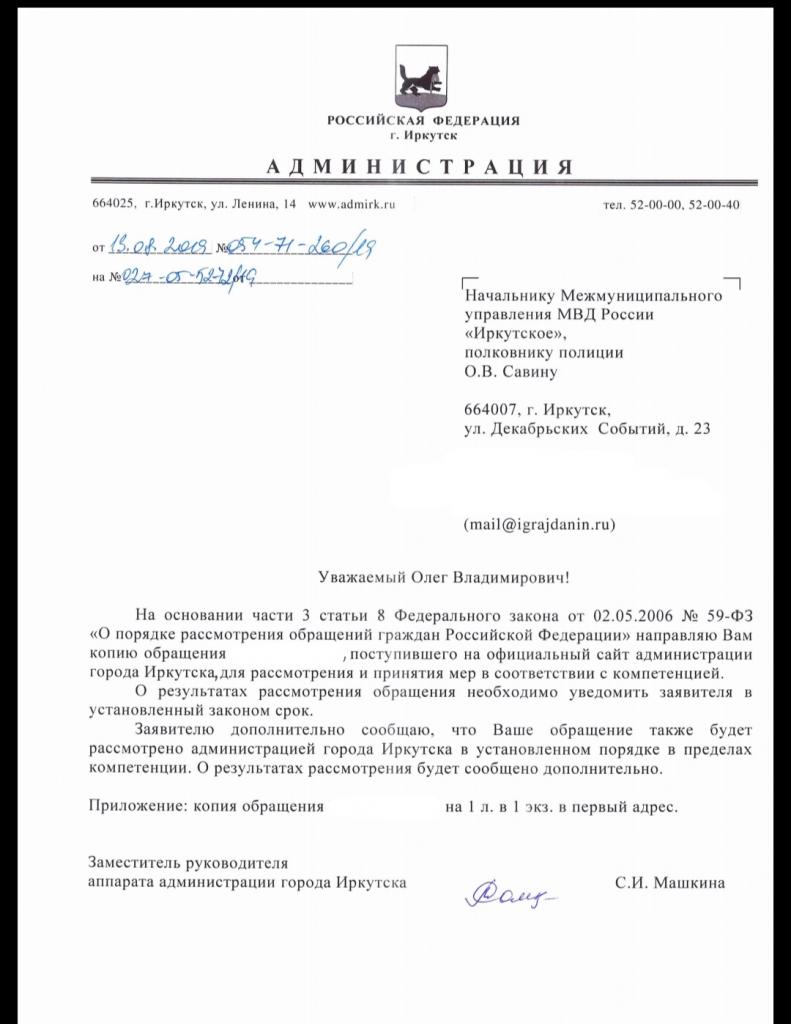 айГражданинОтправлено 05.08.2019: "Администрация города Иркутска"