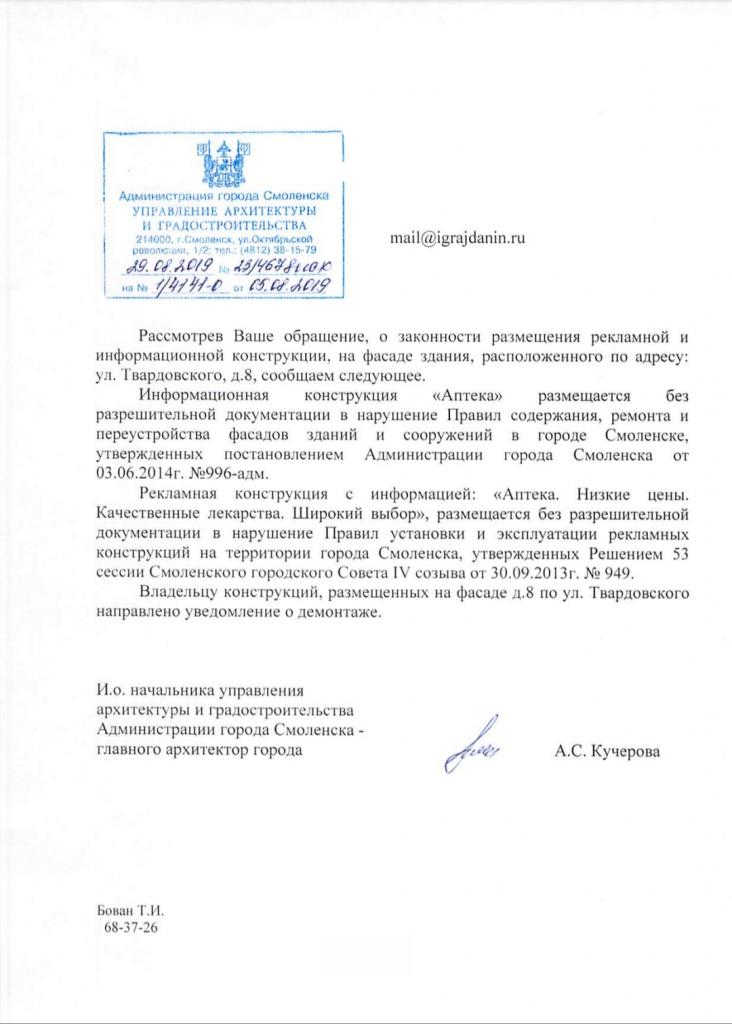 айГражданинОтправлено 05.08.2019: "Администрация города Смоленска"