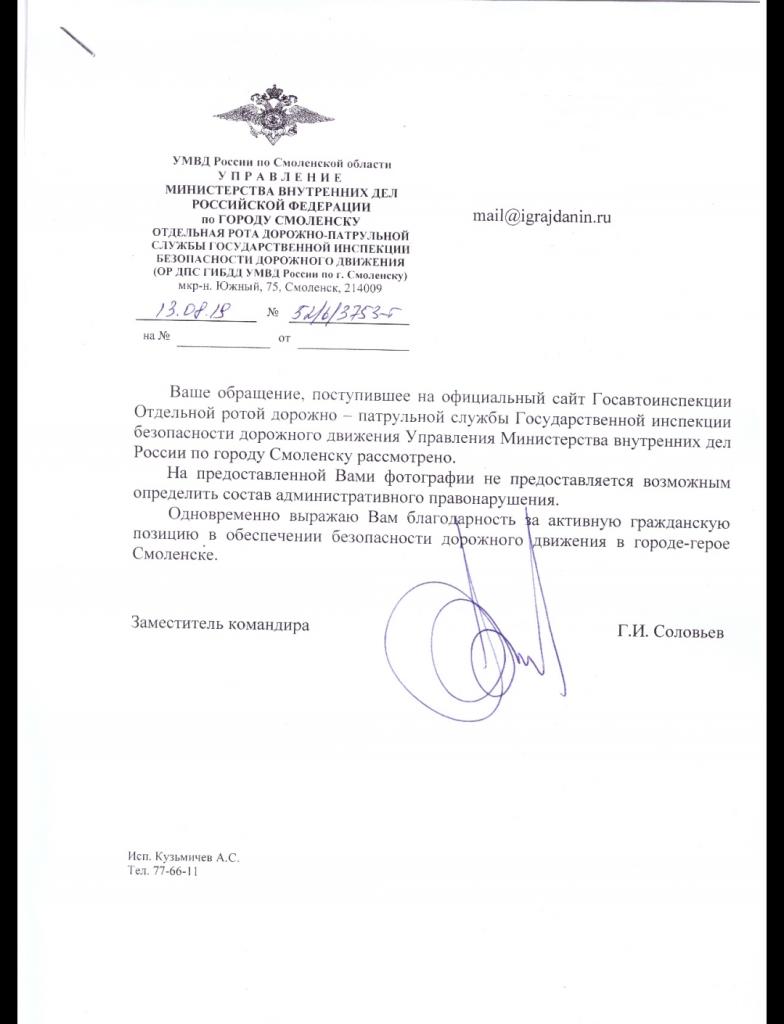 айГражданинОтправлено 05.08.2019: "УГИБДД УМВД России по Смоленской области"
