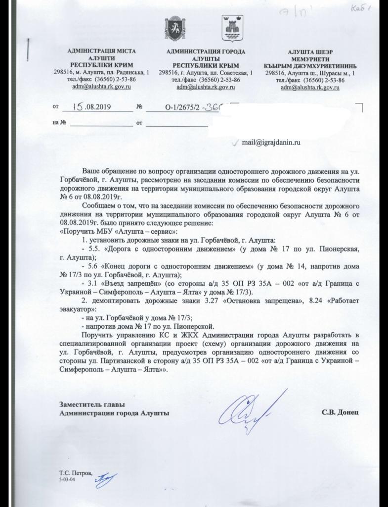 айГражданинОтправлено 05.08.2019: "Администрация города Алушты республики Крым"