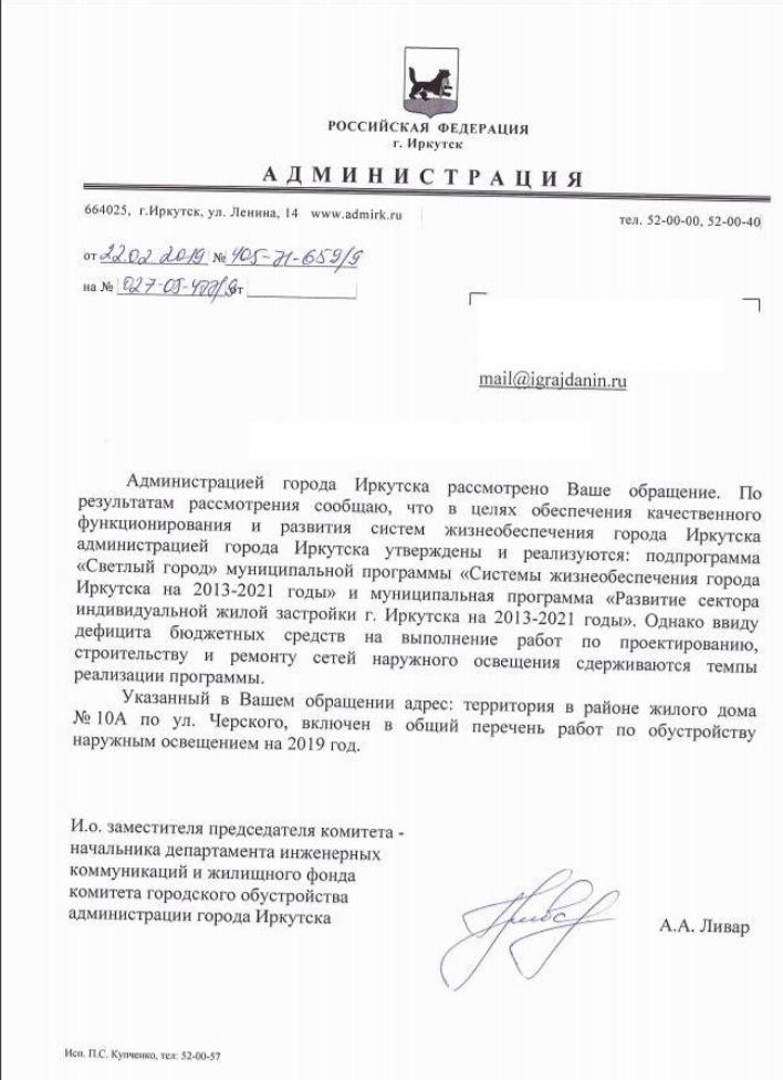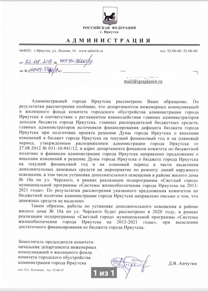 айГражданинОтправлено 12.08.2019: "Администрация города Иркутска"