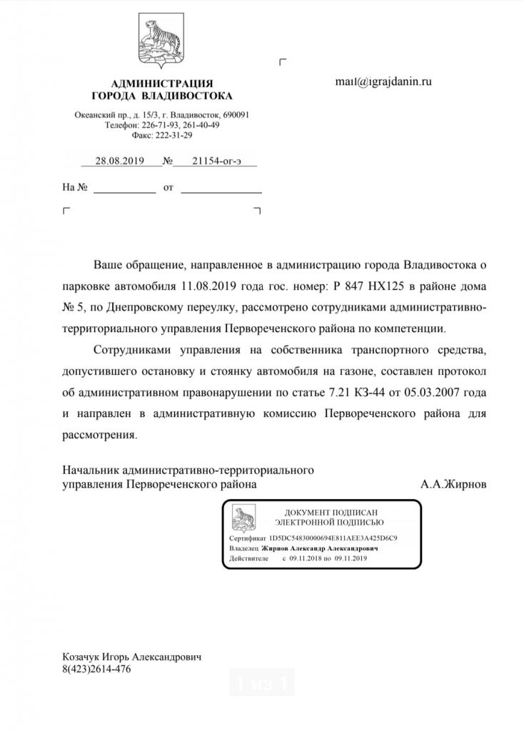 айГражданинОтправлено 12.08.2019: "Администрация города Владивостока"