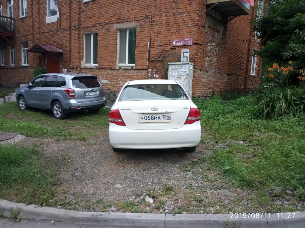 11.08 в 11:30 водитель автомобиля toyota corolla с гос номером у 0682 125rus припаркован на газоне в районе дома днепровский переулок 5