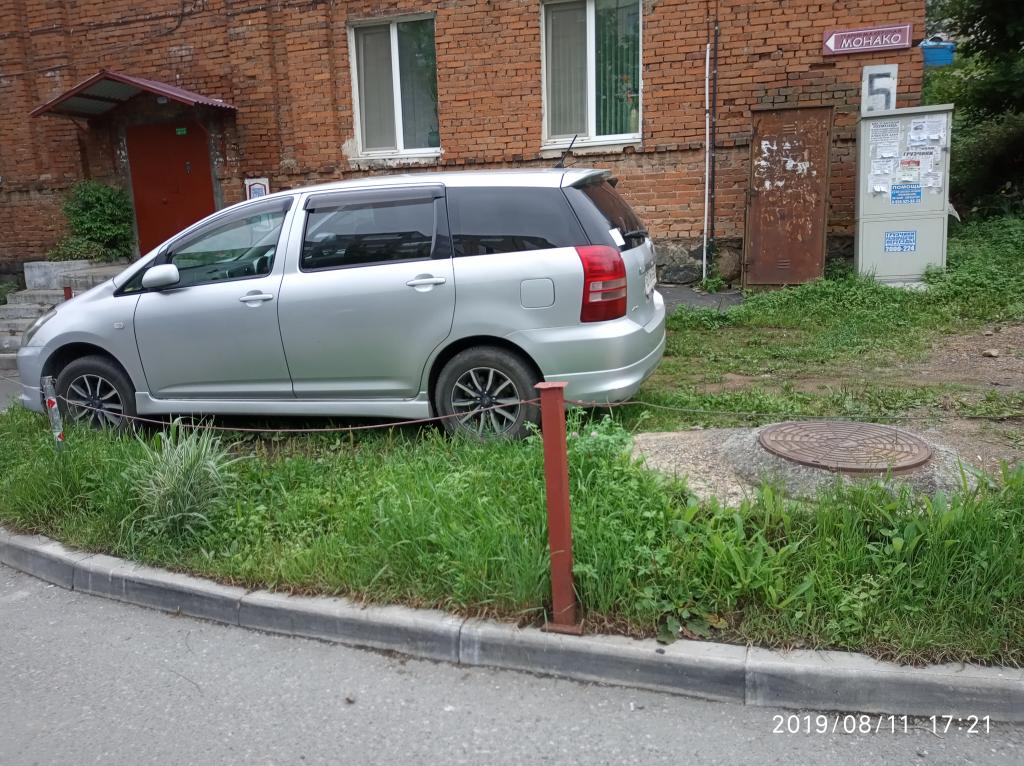 11 08 2019 в 17:20 автомобиль с гос номером н517вм 125 был припаркован на газоне в районе дома днепровский переулок 5