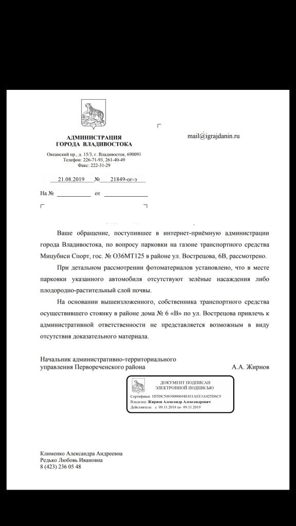 айГражданинОтправлено 16.08.2019: "Администрация города Владивостока"