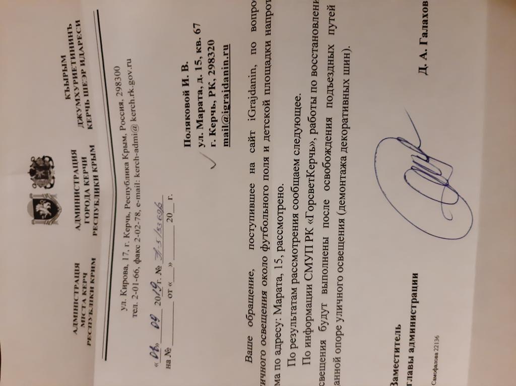 айГражданинОтправлено 16.09.2019: "Администрация города Керчи Республики Крым"