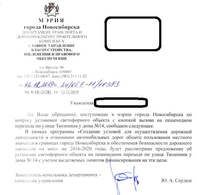 айГражданинОтправлено 11.11.2019: "Мэрия (администрация) города Новосибирск"