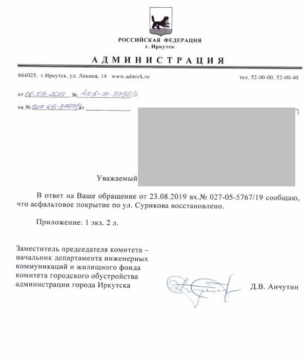 айГражданинОтправлено 22.08.2019: "Администрация города Иркутска"
