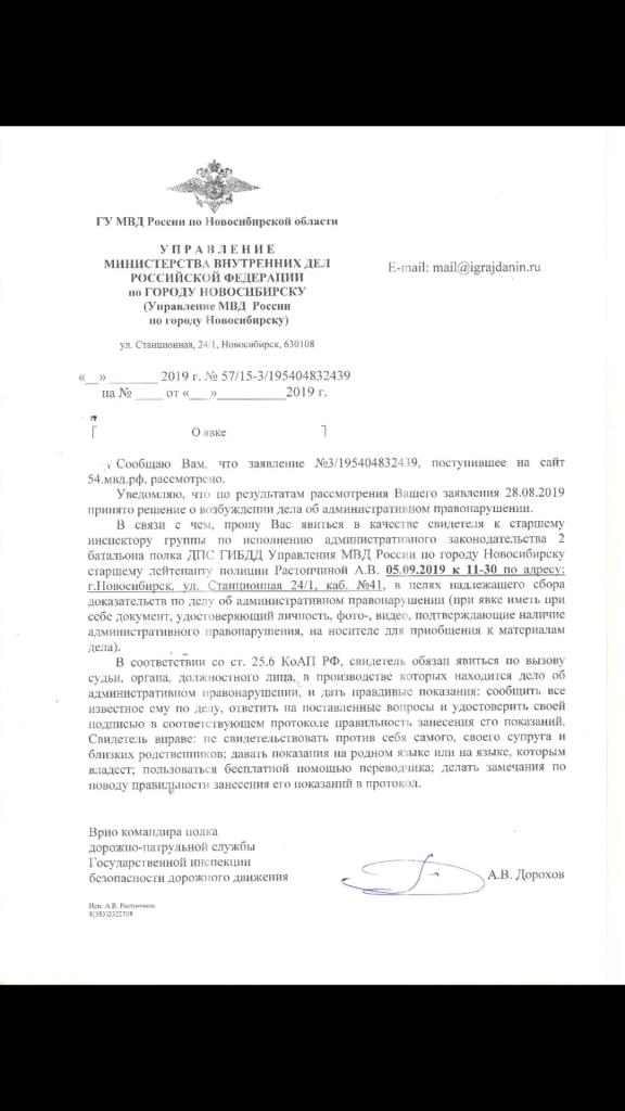 айГражданинОтправлено 26.08.2019: "Управление ГИБДД ГУ МВД России по Новосибирской области"
