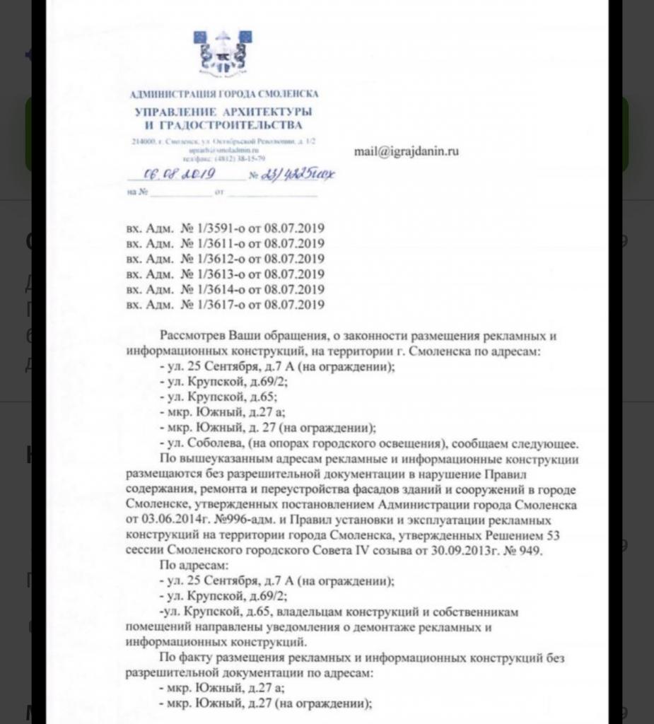 айГражданинОтправлено 14.12.2019: "Администрация города Смоленска"