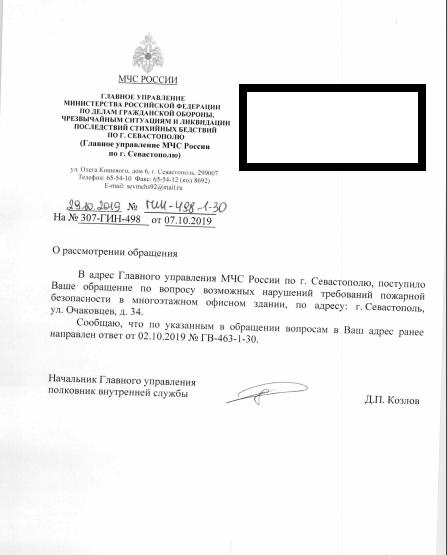 По данному поводу, в июле 2018 года было направлено Заявление в Главное управление МЧС России по городу Севастополю, и в Прокуратуру города Севастополя, с просьбой провести проверку указанных фактов и принять соответствующие меры.