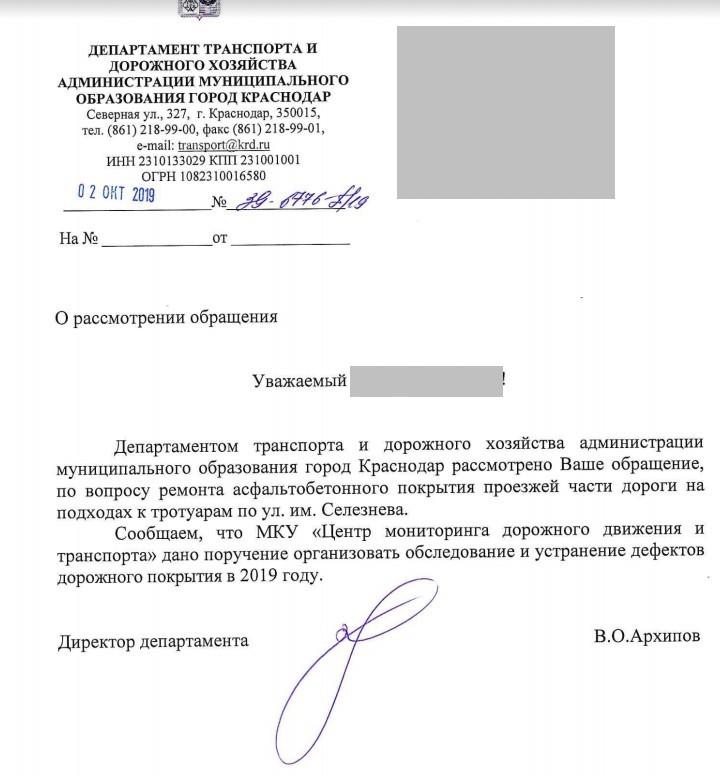 айГражданинОтправлено 03.09.2019: "Администрация муниципального образования г. Краснодар"
