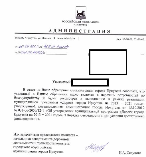 айГражданинОтправлено 03.09.2019: "Администрация города Иркутска"