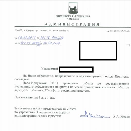 Отправлено 03.09.2019: "Администрация города Иркутска"