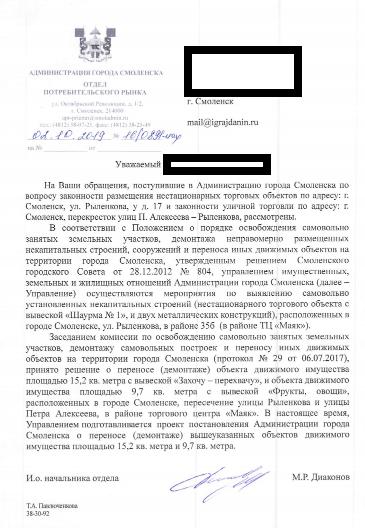 айГражданинОтправлено 12.07.2020: "Администрация города Смоленска"