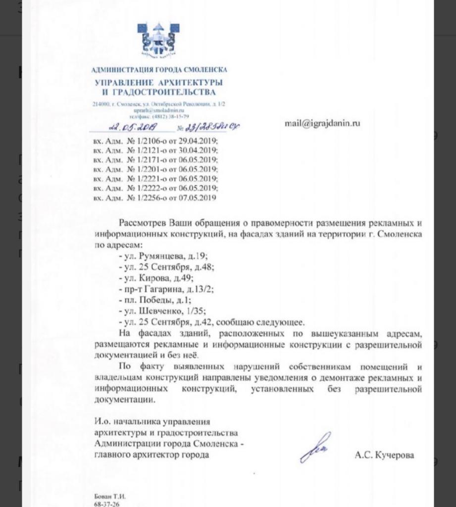 айГражданинОтправлено 08.09.2019: "Администрация города Смоленска"