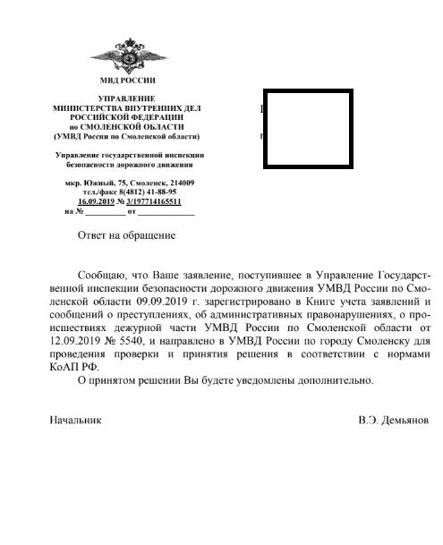 айГражданинОтправлено 09.09.2019: "УГИБДД УМВД России по Смоленской области"