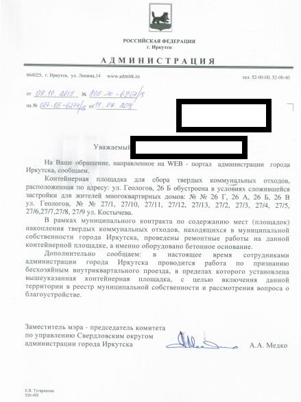 айГражданинОтправлено 09.09.2019: "Администрация города Иркутска"