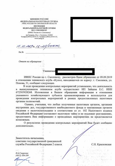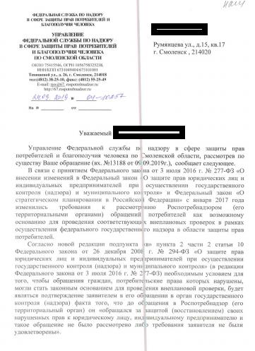 айГражданинОтправлено 09.09.2019: "Управление Федеральной службы по надзору в сфере защиты прав потребителей и благополучия человека по Смоленской области "